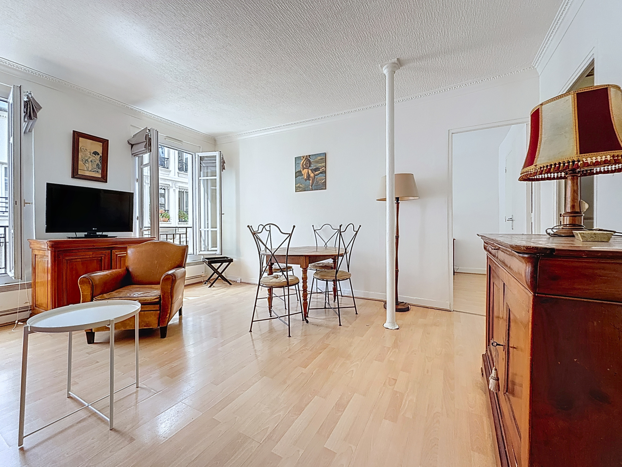 Situé rue de Crussol, cet appartement traversant comprend une entrée avec des WC séparés, un séjour lumineux exposé sud-est, une cuisine indépendante s’ouvrant directement sur le séjour, une chambre confortable, et une salle d’eau avec fenêtre. Son plan fonctionnel et modulable offre de belles possibilités d’aménagement.