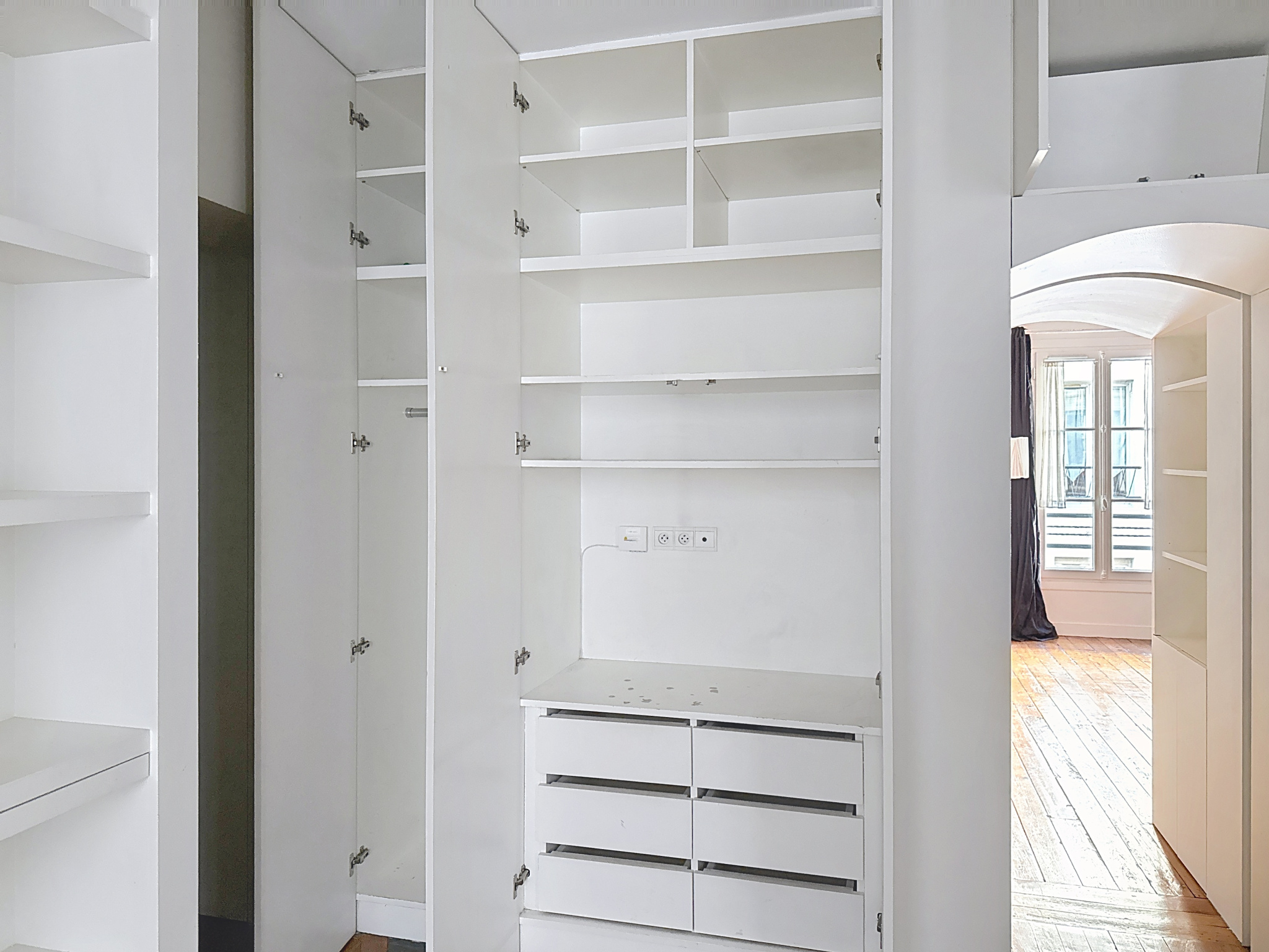 L’appartement, rénové par architecte, se compose d’une entrée optimisée avec de très nombreux rangements, d’un séjour avec cuisine ouverte aménagée, d’une chambre avec coin bureau et rangements, d’une salle de bain avec 2 fenêtres et d’un WC indépendant.