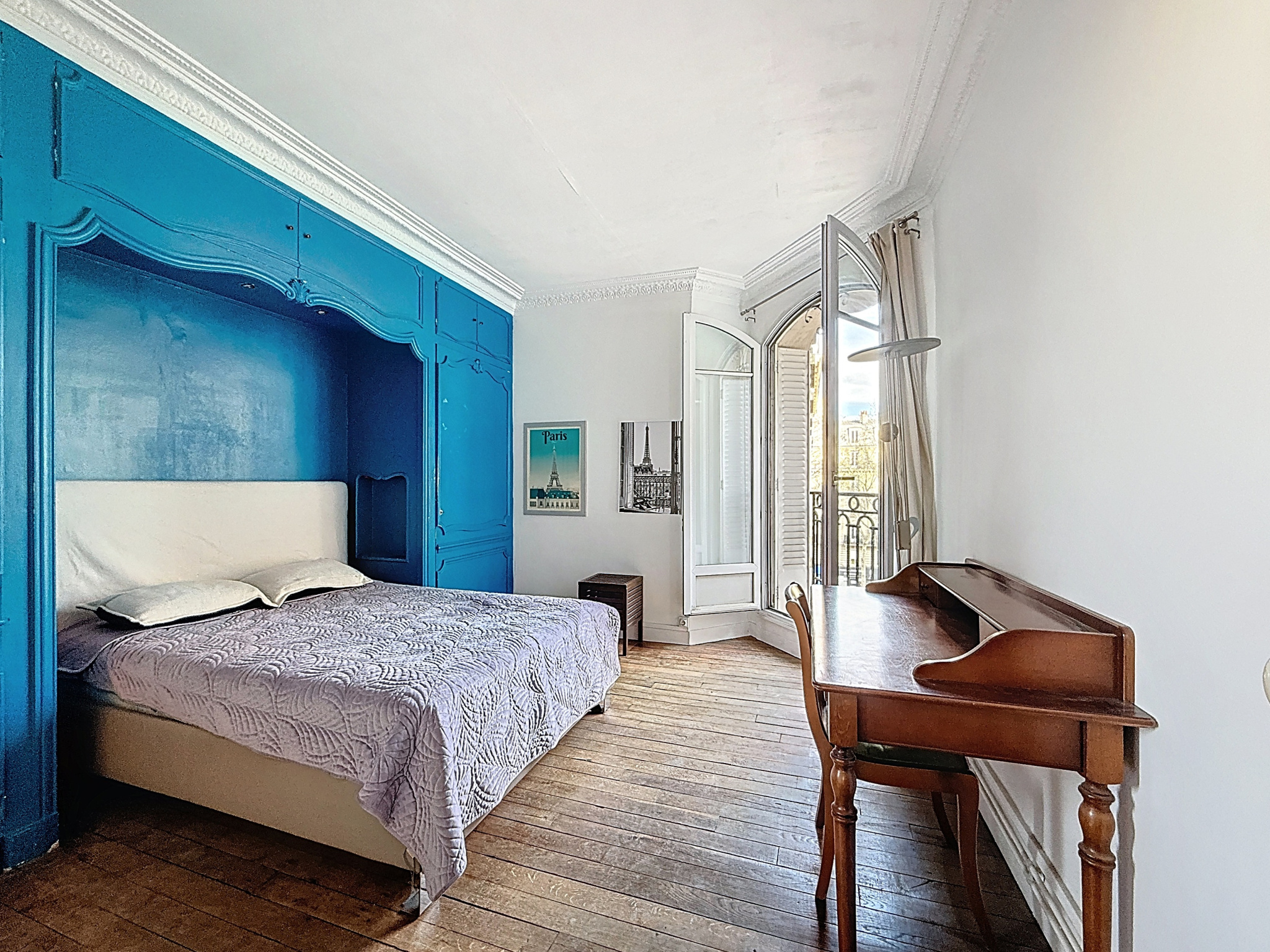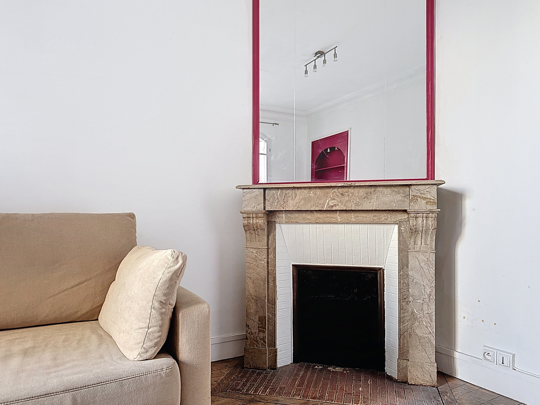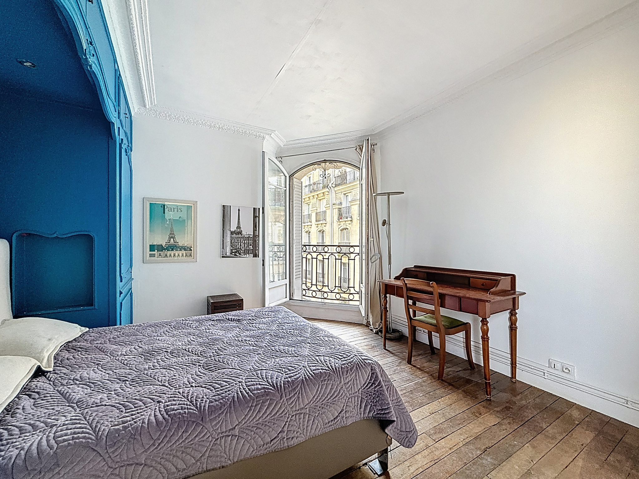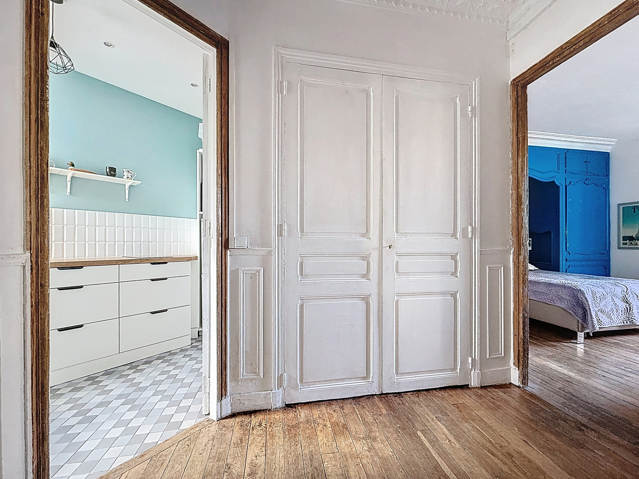 L’appartement s’ouvre sur une entrée avec rangements, qui dessert un agréable séjour ayant conservé les codes de l’ancien (parquet d’origine, cheminée, moulures), une cuisine indépendante, une chambre spacieuse avec de nombreux rangements et une salle de bain ainsi qu’un WC indépendant.