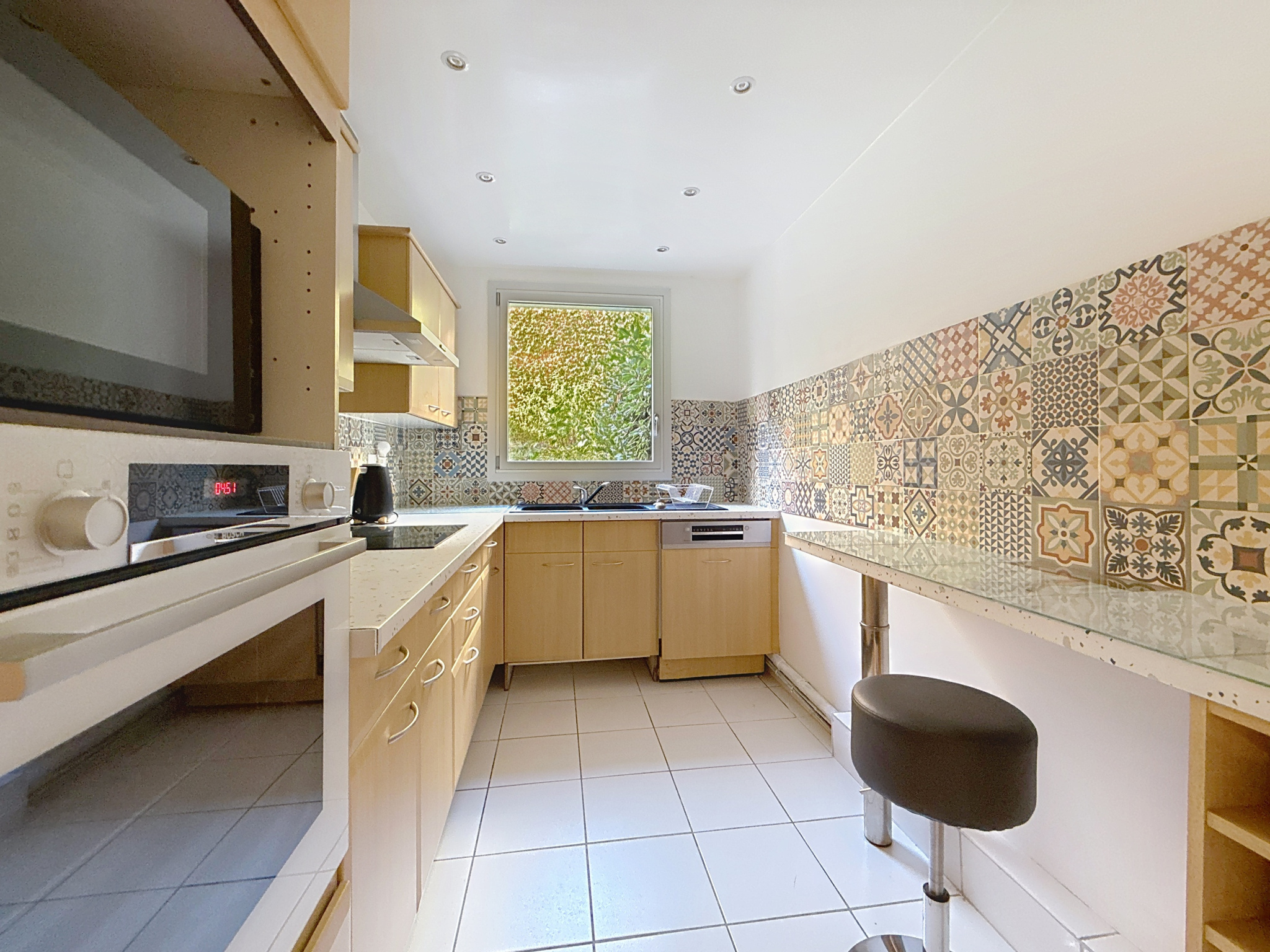 En rez-de-jardin, au calme absolu, dans la cour d’un immeuble récent, cet appartement (70,21 m2) comprend une entrée, un séjour ouvrant sur l’extérieur, une cuisine séparée aménagée et équipée (cuisine US possible), deux chambres, une salle de bains avec douche, baignoire et WC, des WC séparés avec lave-mains. Une cave et un box complètent ce bien.