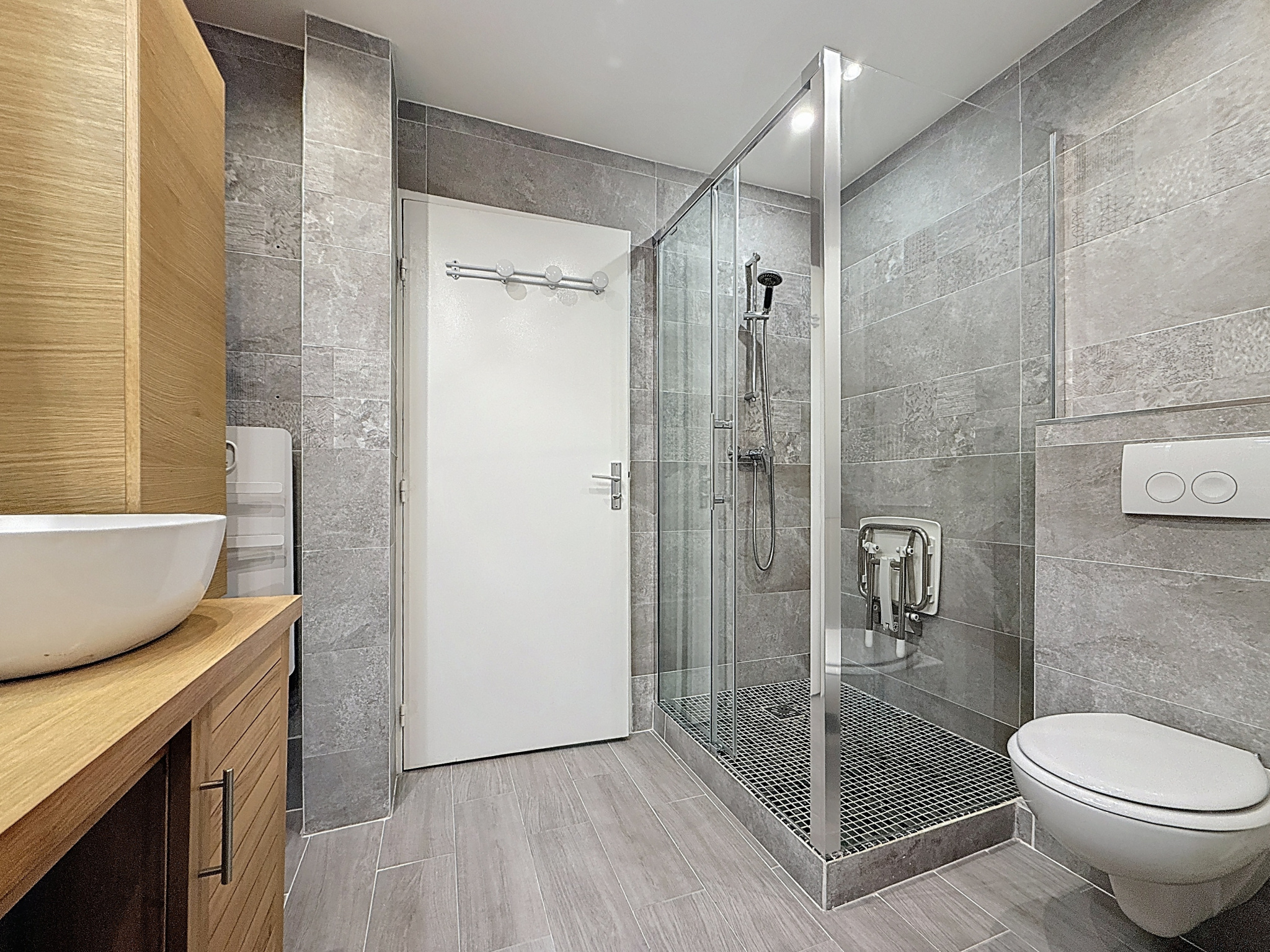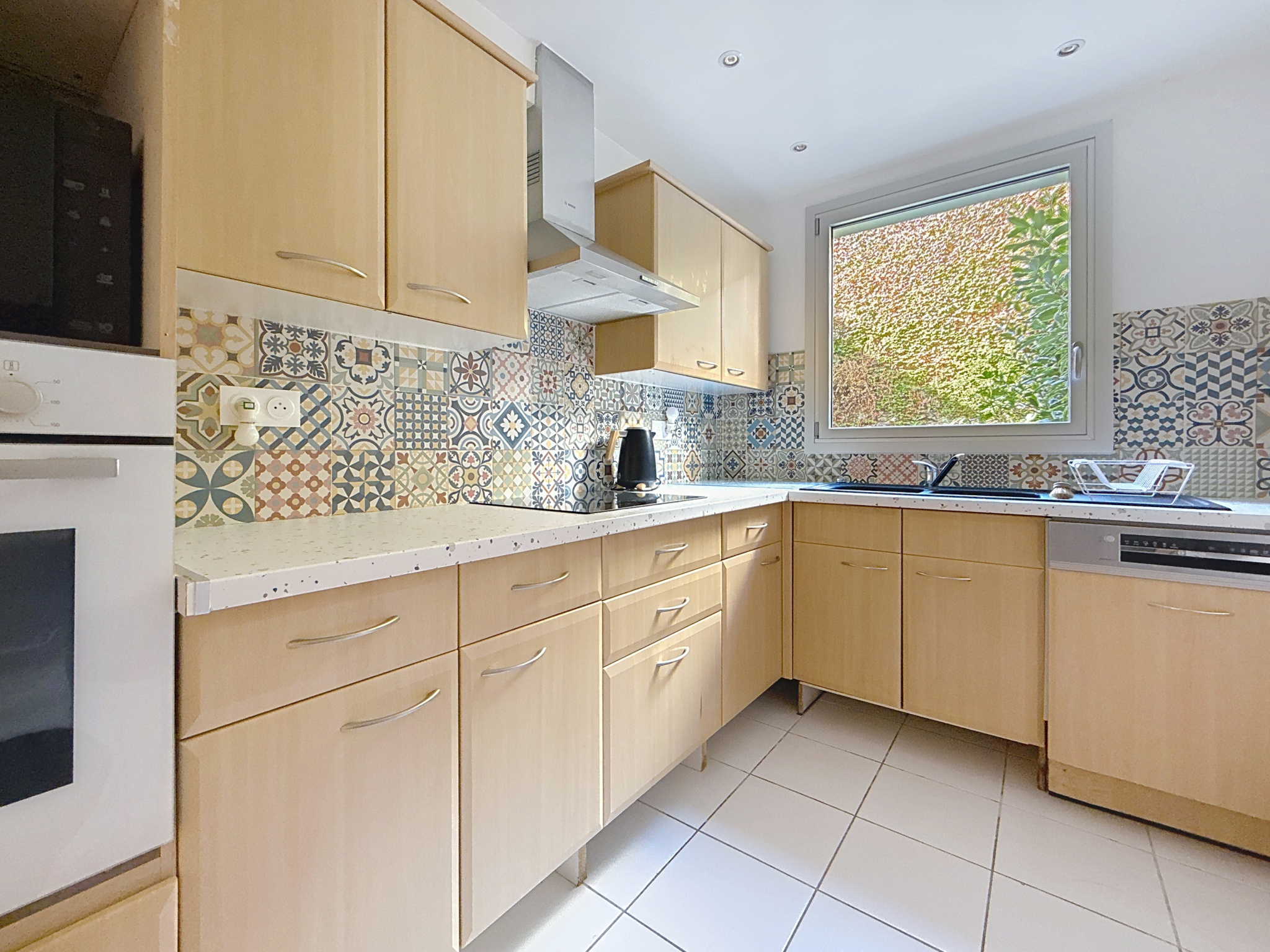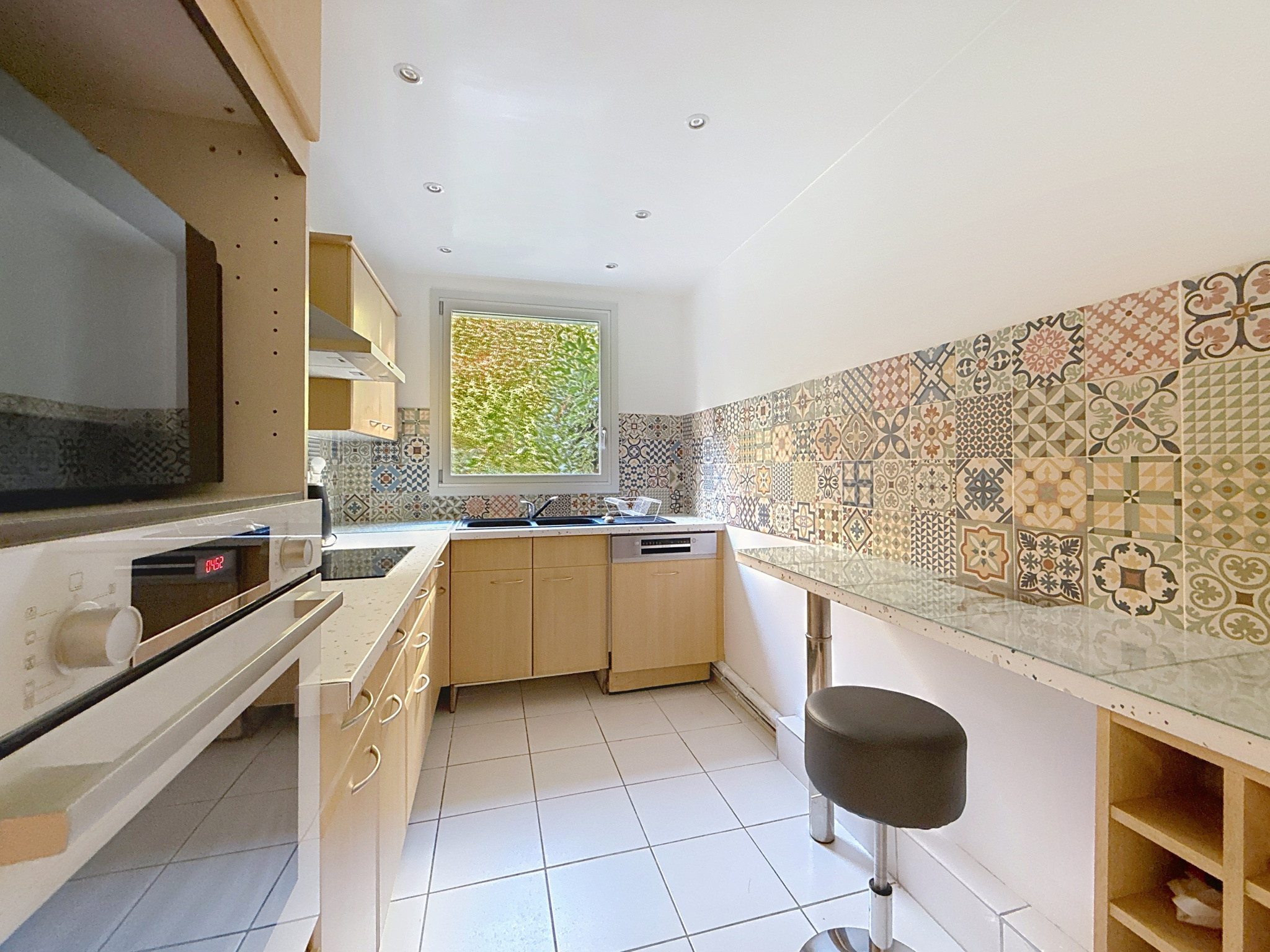 Ce logement lumineux (expo ouest), en parfait état, est parfaitement équipé : plaque 4 feux, hotte, four, lave-vaisselle, lave-linge, réfrigérateur-congélateur américain, micro-ondes. Il s’ouvre sur un espace extérieur hors norme :