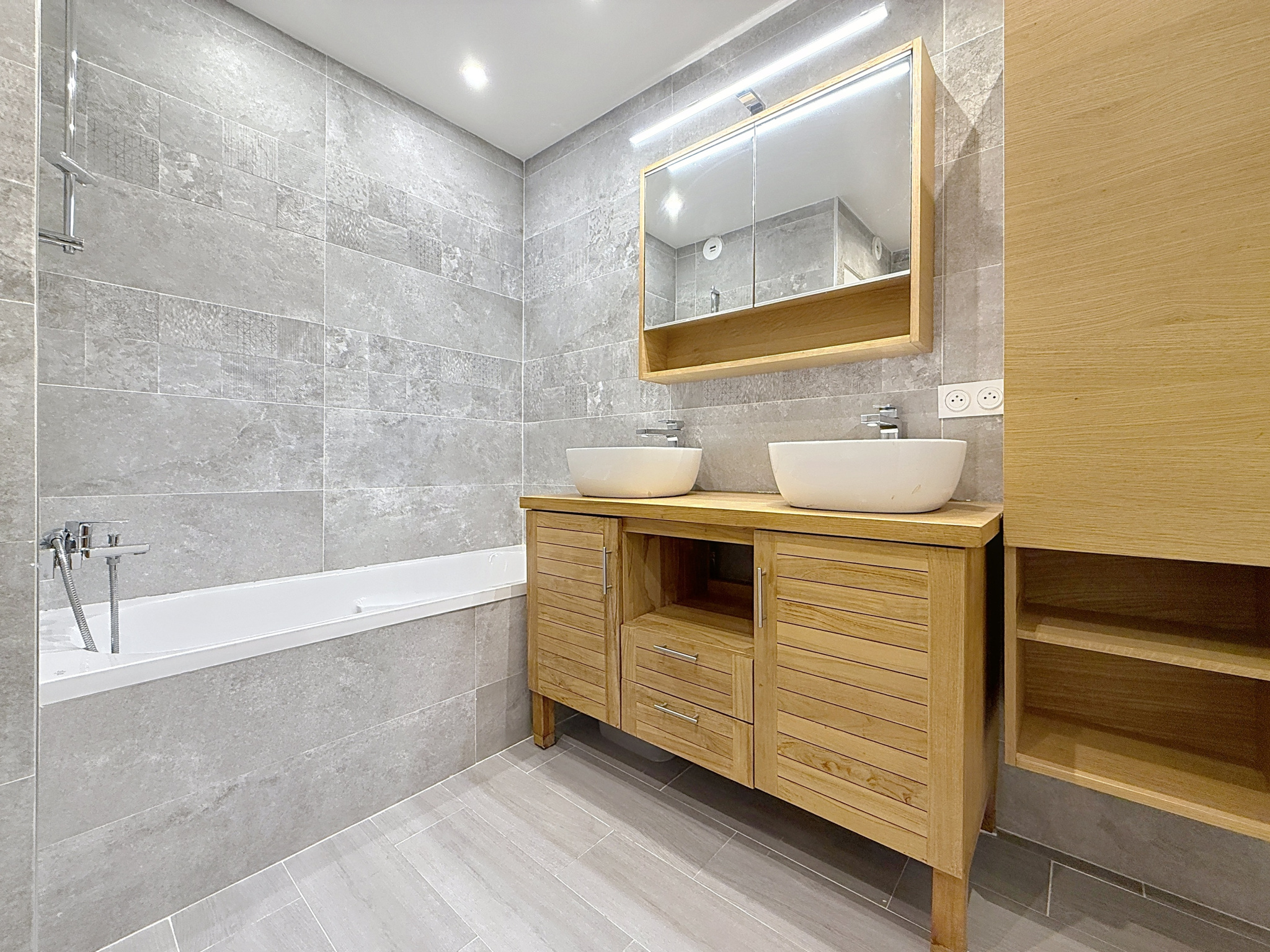 Installé en rez-de-jardin, au calme absolu, dans la cour d’un immeuble récent, rue des grands champs, cet appartement (70,21 m) comprend une entrée, un vaste séjour donnant sur une terrasse et le jardin, une cuisine séparée aménagée et équipée, des WC séparés avec lave mains, un dégagement permettant d’accéder à la partie nuit, deux chambres, une salle de bains avec douche, baignoire et WC.