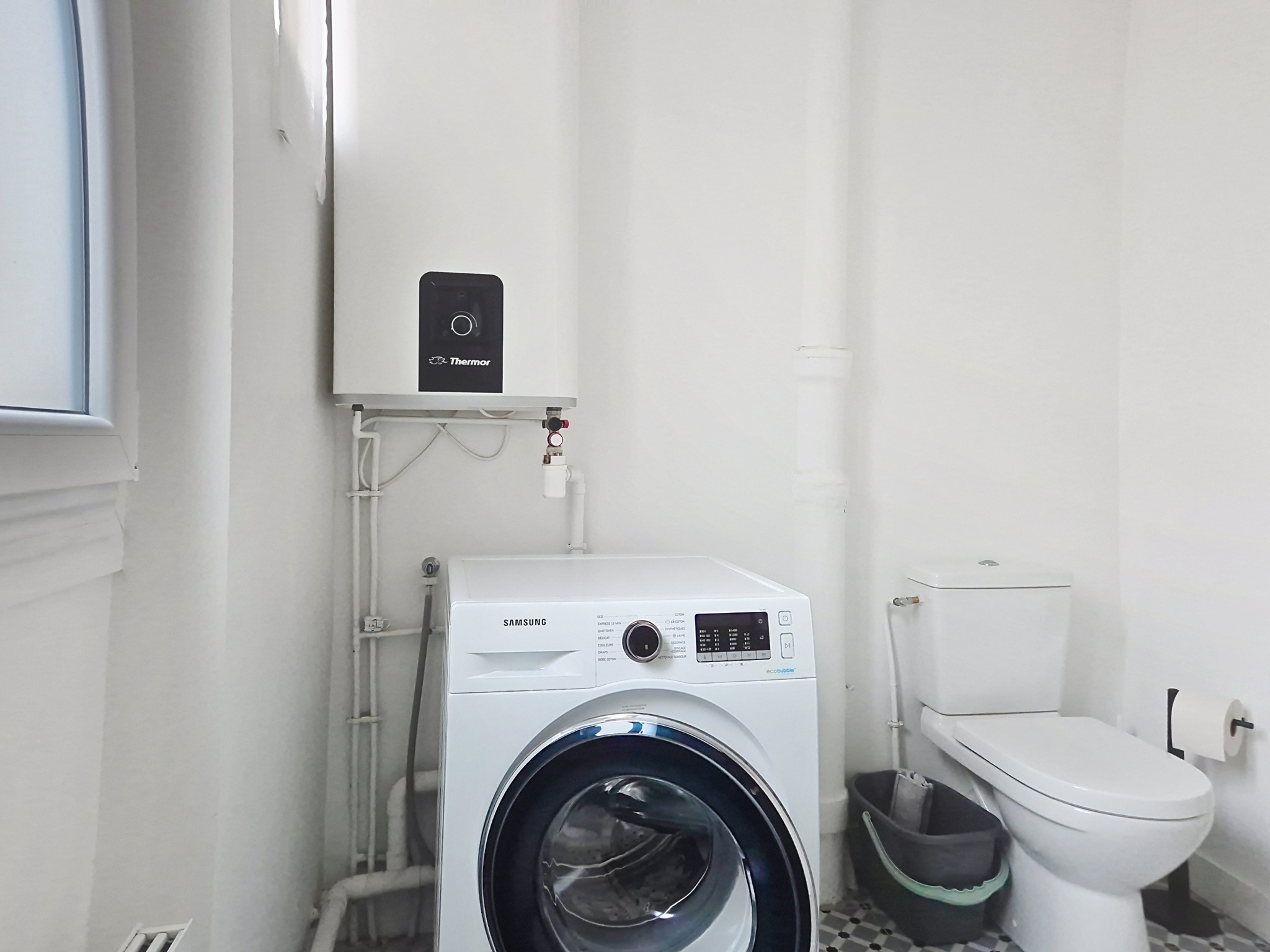 Cet appartement traversant, est en très bon état, il comprend une entrée, un grand séjour avec une cuisine ouverte aménagée et équipée, une chambre au calme sur cour, une salle d’eau avec WC. Ce charmant logement est parfaitement équipée avec des appareils électroménagers récents : plaque induction, hotte, four électrique, lave-vaisselle, réfrigérateur congélateur, lave-linge.